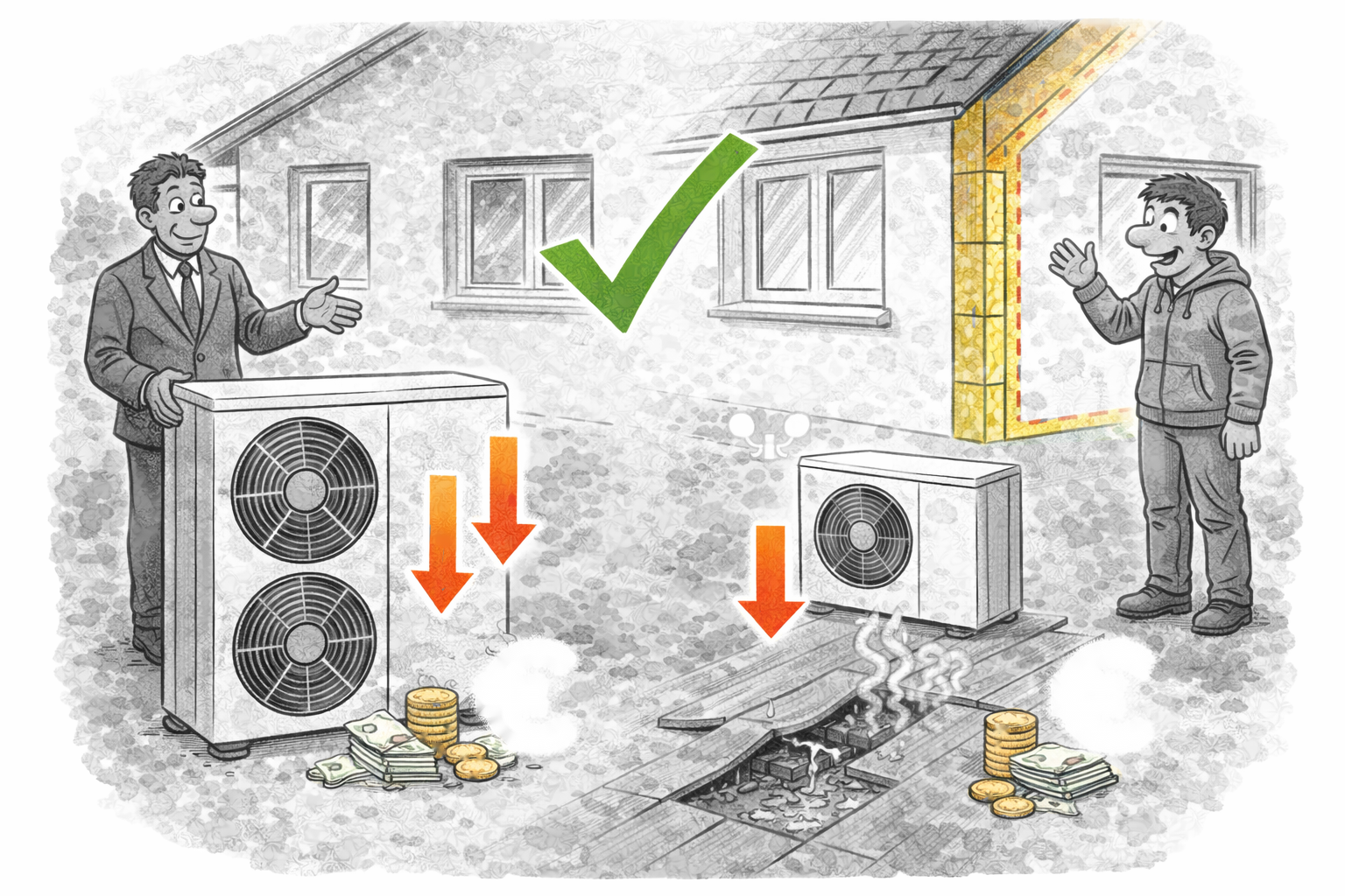 Viele planen zuerst die Haustechnik – dabei liegt der grösste Hebel oft in der Gebäudehülle. Denn: Je besser Dämmung, Fenster und Luftdichtheit, desto tiefer die Heizlast. Und das hat einen direkten Effekt auf die Wärmepumpe.